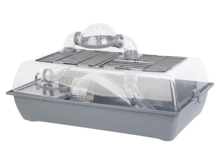 Giv din hamster et stort og lækkert hjem med dette hamsterbur fra Inter-Zoo. Buret er skabt til at give maksimal komfort og et stimulerende miljø til din hamster eller mus. Inde i buret finder du en terrasse med rampe op til, et hamsterhjul og en madskål, samt rør den kan kravle i.