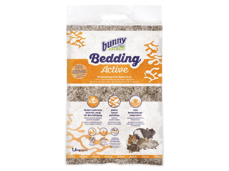 Bunny Nature Bedding Active er ikke blot strøelse, men også en herlig legeplads for de små gnavere, hvor de kan grave tunneler og bygge huler.