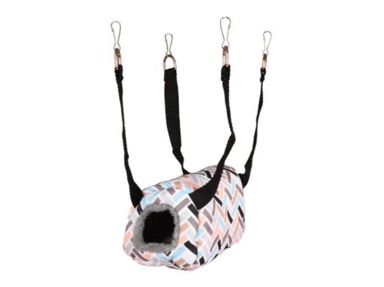 Flamingo Clavio Hus Til Ophæng til gnavere er et dejlig blød hus til ophæng som er dejlig blød inde i som er lavet i flotte farver. Lavet så den kan hænge i buret så din gnavere kan holde sig aktiveret når den skal der ind.
