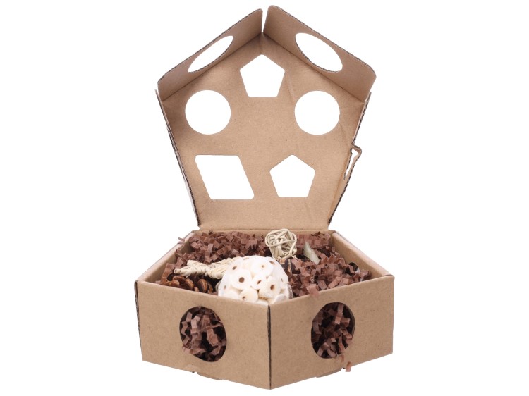 - Interaktiv udfordring: Boksen er udstyret med åbninger, der gør det muligt for dyret at kigge ind eller bevæge sig gennem boksen, hvilket giver både fysisk og mental træning