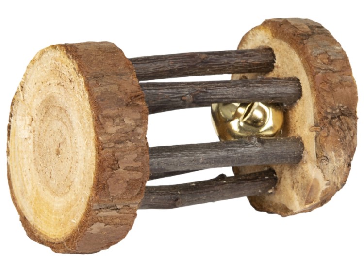 Flamingo legerulle til gnavere og kaniner af træ m. bjælde i midten.
