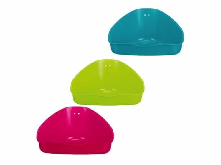 Trixie hjørnetoilet i plast til hamster, Rotter, Marsvin og kaniner, med sænket indgang, inkl. holder og ståltråd.