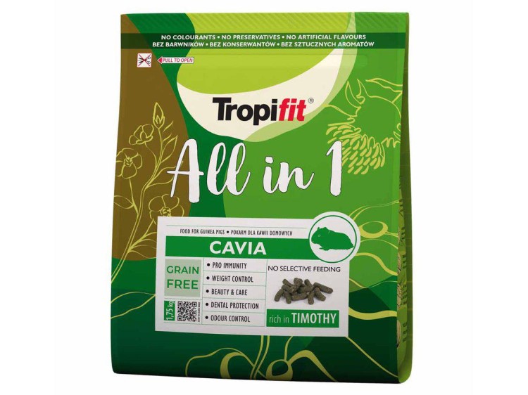 Tropifit Cavia / Marsvin kornfri. Med ensartede stykker forhindrer det Marsvin fra selektivt fødeindtag. Ekstruderet foder til marsvin er fri for genetisk modificerede ingredienser (GMO), konserveringsmidler og farvestoffer. Den indeholder ikke smagsforstærkere, tilsat sukker eller aromaer. Den er meget velsmagende og accepteres derfor let af Marsvin.